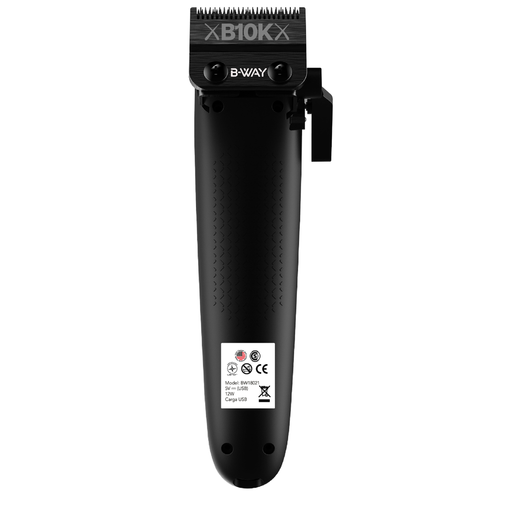 Máquina de corte profissional sem fio para uso com ou sem cabo, com motor híbrido de levitação magnética que atinge 10.000 RPM e conta com 12W de potência. Sua bateria de íon de lítio de 2500mAh oferece 180 minutos de uso contínuo com uma carga de 240 minutos. Motor muito potente de alta precisão, lâmina de aço japonês tipo super sharp em V super afiada com 5 posições ajustáveis (0,7mm / 1,4mm / 2mm / 2,8mm / 3,5mm). Além disso, uma luz LED indicadora de energia. Este conjunto de 13 peças inclui: cortador profissional, uma carcaça e uma tampa de motor extra, 6 pentes guia magnéticos (1,5 mm / 3 mm / 4,5 mm / 6 mm / 10mm / 13mm), óleo lubrificante, escova de limpeza, base de carregamento e cabo USB.